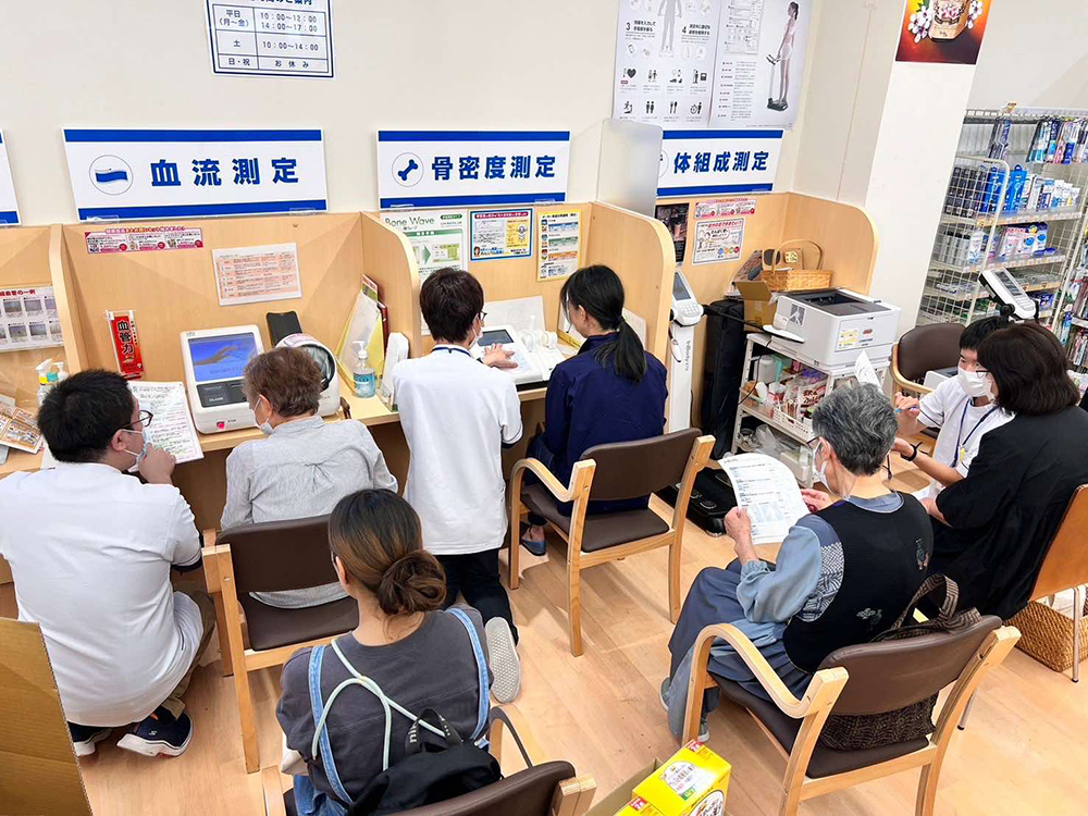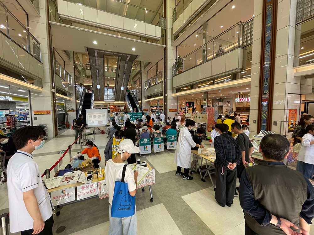 エコールロゼショッピングセンターのアトリウム広場では広島大学のご協力を得て、健康イベントとして検体測定も行いました。