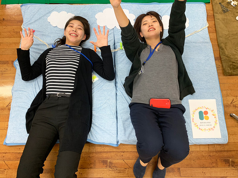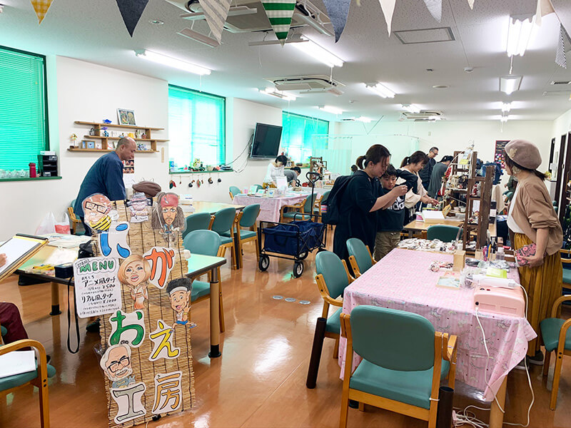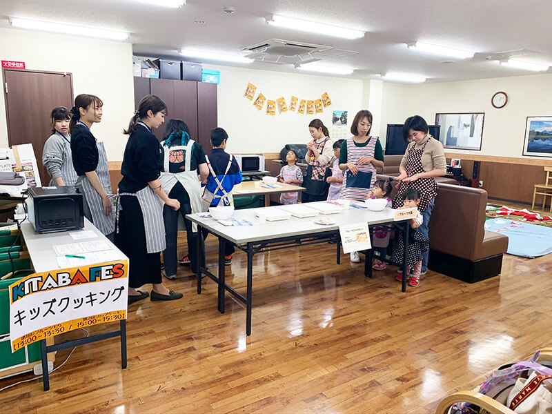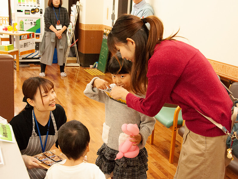 キタバ薬局河内長野店1階ではメイクアップ体験やフォトスポット・バルーンアート・スタンプラリー、 2階デイサービスフロアでは親子料理教室や様々なブースを出店しました。